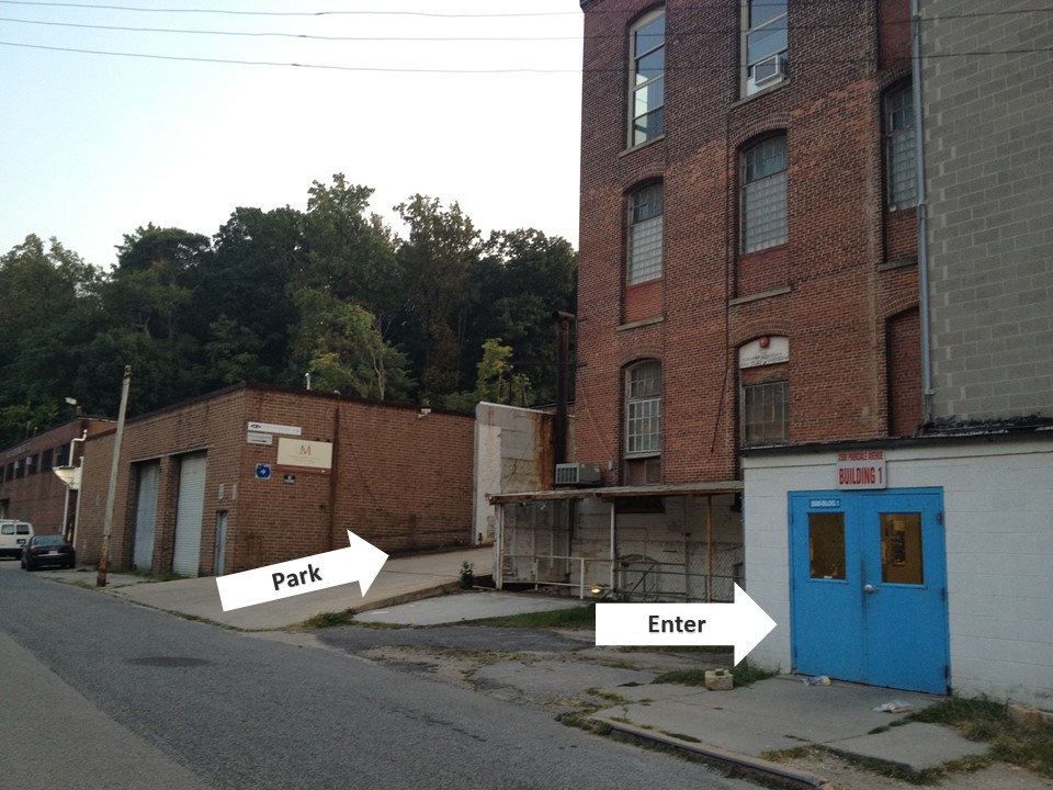 The address is 3500 Parkdale Ave. Baltimore, MD 21211. The building is on the right-hand side of the street. It’s an old 3 story brick building that used to be a mill. There is a parking lot just past the building up a concrete ramp that has approximately 10 spaces. There is also parking on the street. Go in the blue doors from the street. Take the elevator up to the 3rd floor. Chip’s studio is on the left.