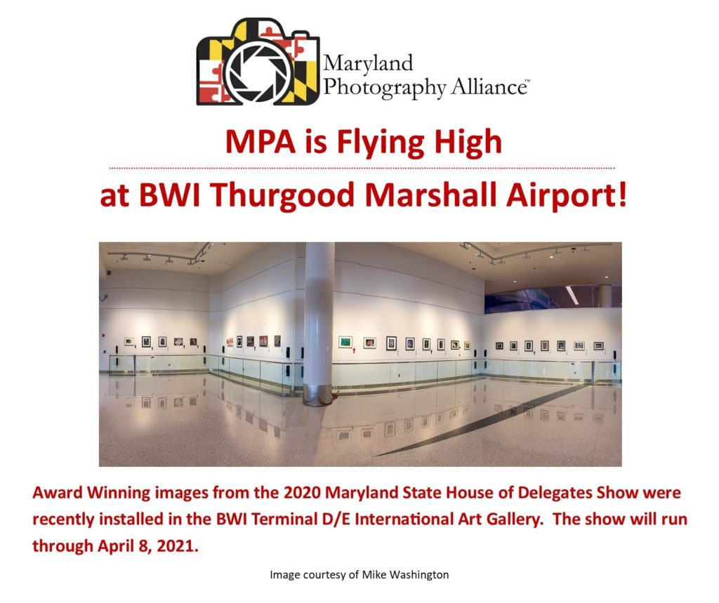 MPA: BWI ExhibitNovember 23, 2020Exhibit, MPA0 If you’re near BWI in the next few weeks, swing by the gallery and take a look. This MPA show includes at least 2 Arundel Camera Club images as well. Share this post PREV2020 Nov. 18: Monochrome and Color Digital Contests – Open NEXTClub Member – Brian W. Flynn – Campobello Sky